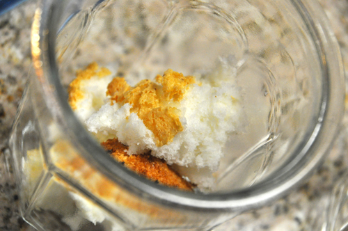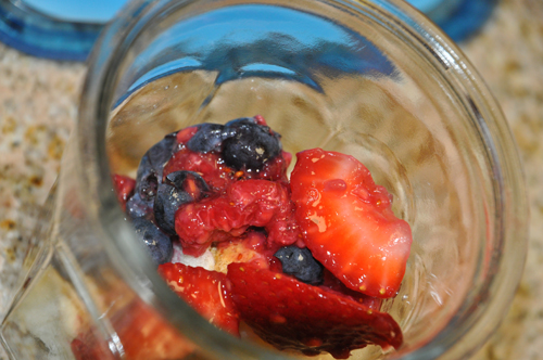 You just take 1/4 cup of blueberries and crush them up in a bowl.