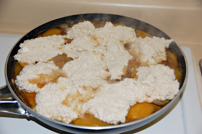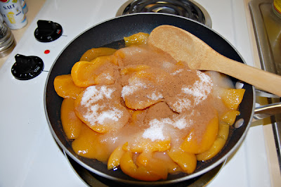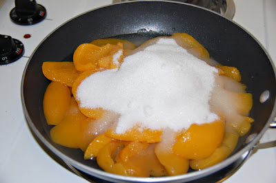 The recipe calls for 6 cups of fresh peaches and despite being in Georgia at the time of this recipe, I couldn’t find a fresh peach in sight, so I grabbed a couple of jars of peaches…