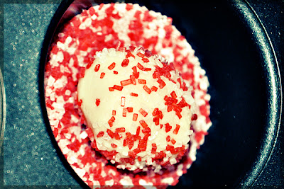 Now, roll your dough into 1 1/2 inch balls and ask the kiddos to roll them in the sprinkles.
