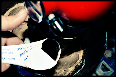 1/2 teaspoon baking powder–note my laziness… I used my teaspoon–gasp– and just filled it half way.