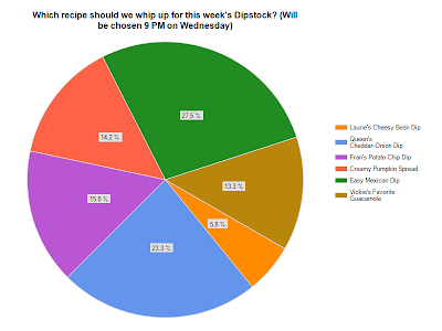 Over 120 of you voted and 27.5 % of you voted for Easy Mexican Dip.