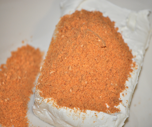You take a brick of cream cheese and add 2 T of taco seasoning…