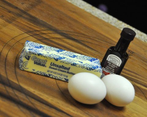 Add 1 stick of slightly softened butter (NOT margarine or light butter), 2 eggs and 1 t vanilla