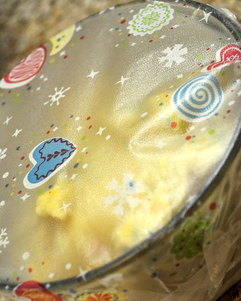 Now I scraped my bowl and put the dough in a covered bowl in my fridge for a couple hours for easy rolling and cookie cutting…