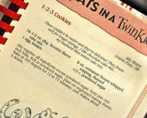 This year, Miss Add and I found two additional cake mix recipes in Gooseberry Patch’s Christmas Cookie Jar Cookbook and whipped them up in four different flavors!
