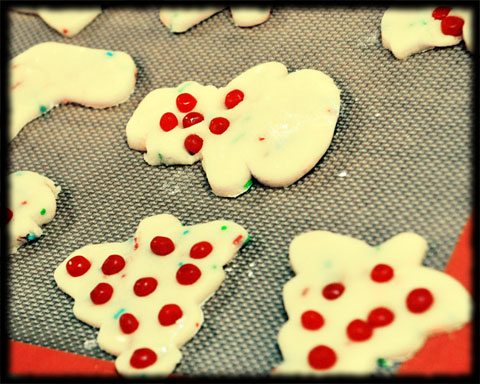 Place on lined or greased cookie sheets and decorate with sugars, sprinkles or cinnamon candies…