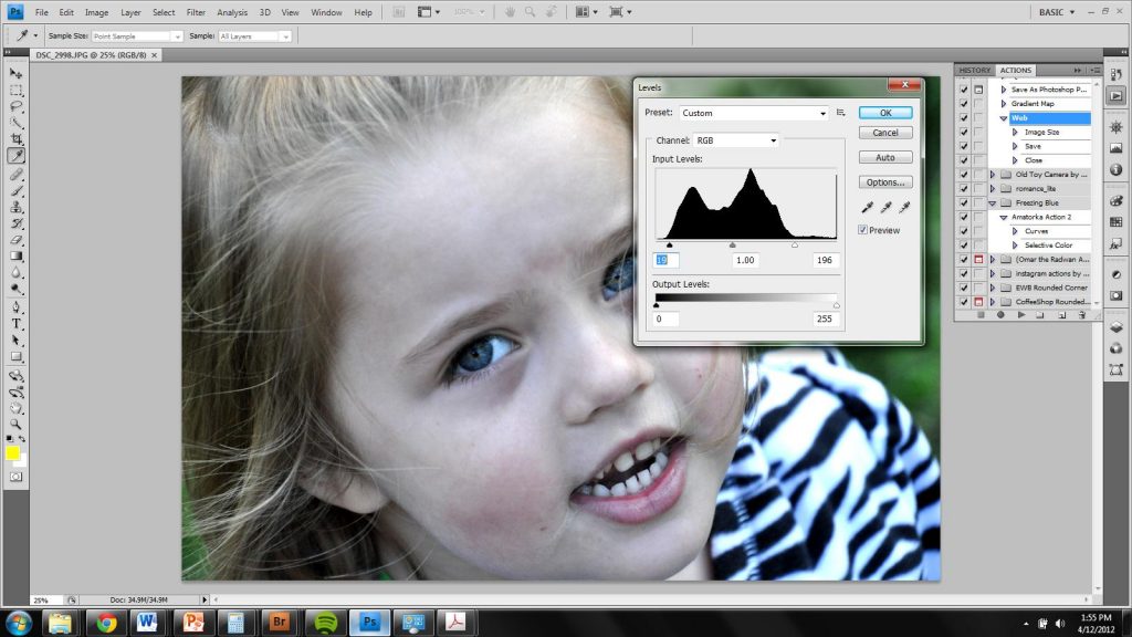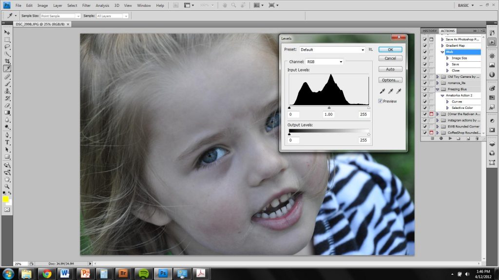 Note: Levels is a one shot deal… meaning don’t permanently change your levels and then go in and do it again. Go back in your history and start over or use adjustment levels to make your changes.