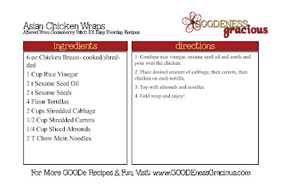 Now, if you are looking for a nice side to compliment the wraps, just flip over a few pages to the Sides in a Snap section and you will find a great Sweet and Sour Slaw that has quickly earned a family favorite status around here…
