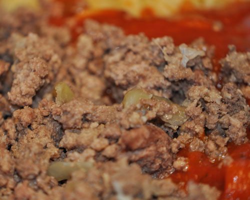 While that cooked up I added 1 lb of my Seasoned Ground Beef to a jar of Add’s favorite sauce…
