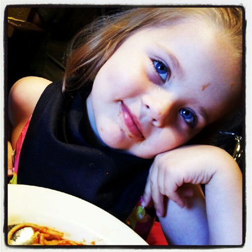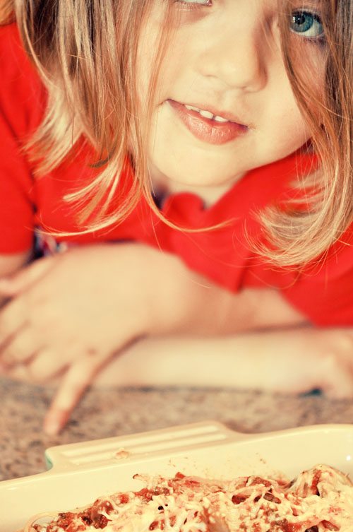 But there are times when she hasn’t had it in a while and she bats those baby blues at me… and Mommy makes spaghetti for dinner.