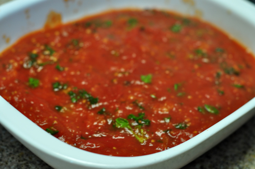 Now cover your chicken with the sketti sauce of your choice… I used my Shallot Basil Marinara Sauce.