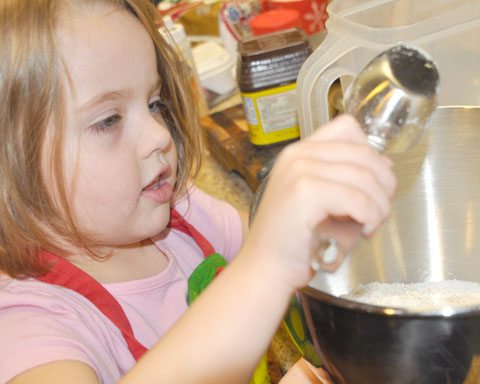 Now take grab the cutest 4 year old you can find and have her take 2 Cups Sugar and 1 t Baking Soda…
