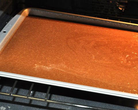 Pour the batter into a lightly greased 11 x17  cookie sheet.