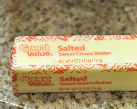 Meanwhile, take a stick of butter and melt in a sauce pan.