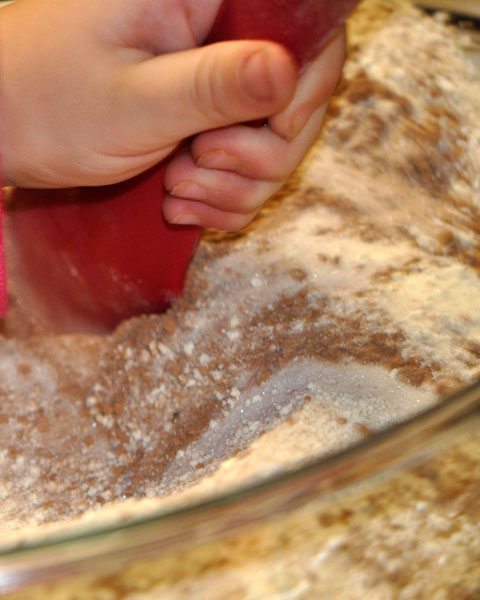 Now, have said 4 year old pour 1 1/2 Cups Sugar in a LARGE mixing bowl.