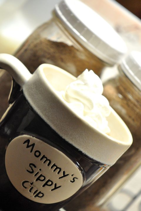 Speaking of cups… wouldn’t a nice mug and a jar of this mix be just the perfect gift for a teacher, mailman or other special person in your life?