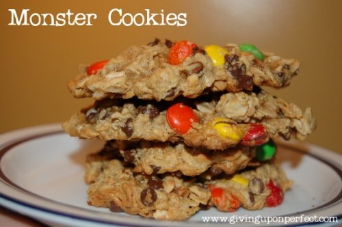 Mary also whipped up a quick batch of Monster Cookies to share. These babies take 15 minutes to prep and 20 minutes to bake. Don’ t they look delish?