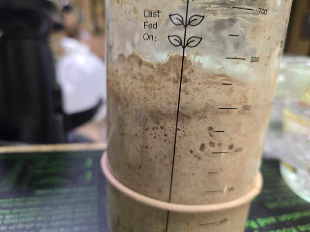 I created this complicated equation of figuring how much starter was in the jar… Current weight minus jar weight.