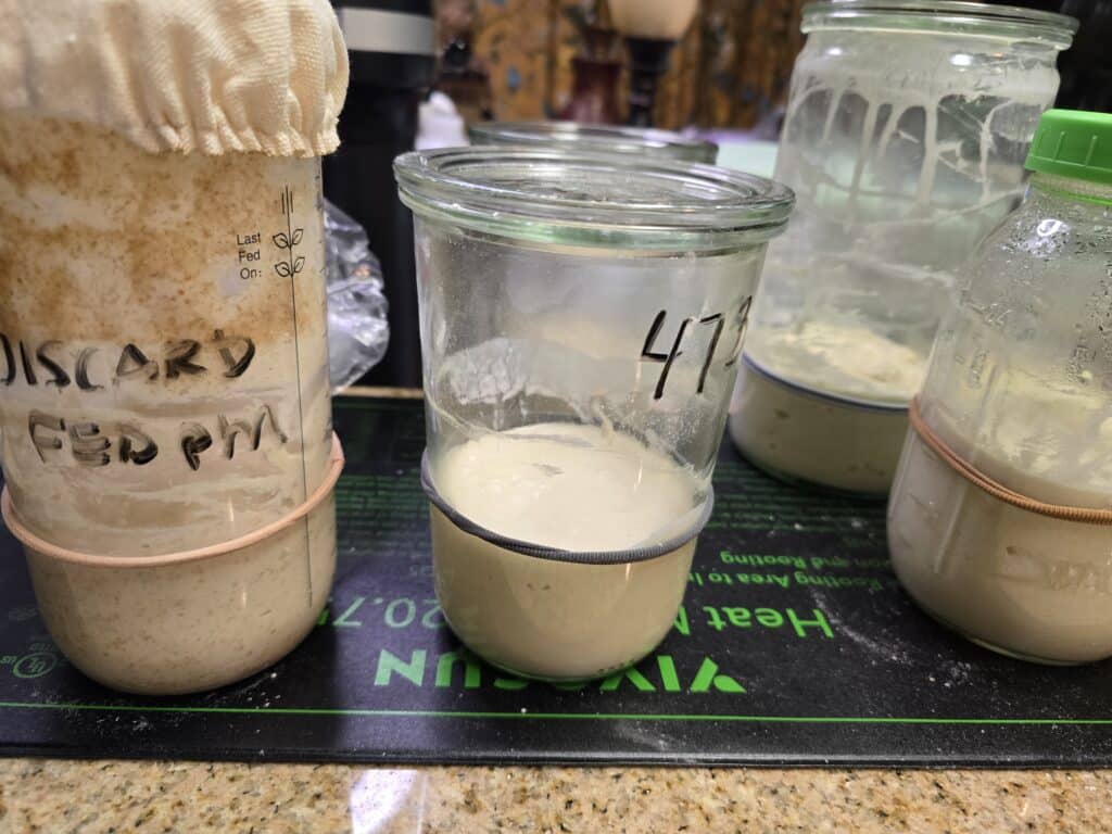 Then I move both Rory and Amy to new jars with proper amounts of their starter and give them a good feed.