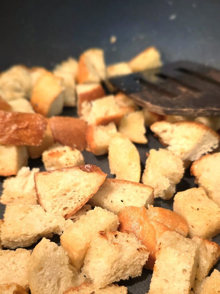 I was able to use our leftover bread to make some pretty tasty croutons for dinner.