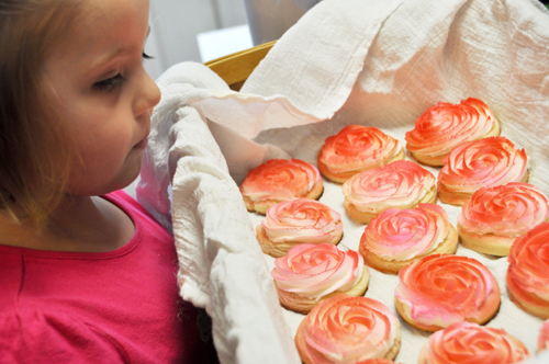 Now roll your dough out and cut into shapes… we went no nonsense this time… since we planned on adding the flower icing… usually we like to go with all kinds of crazy shapes.
