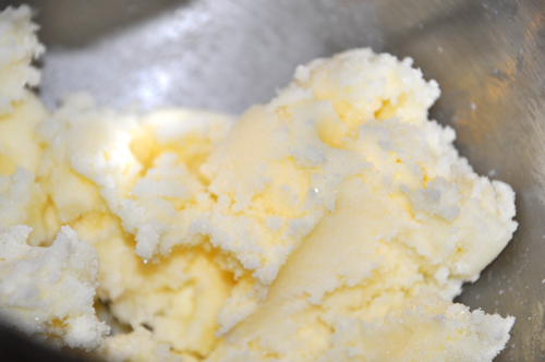 First you cream 1 cup of softened butter with 1 cup of sugar, 1 egg and 1 t Almond Extract…