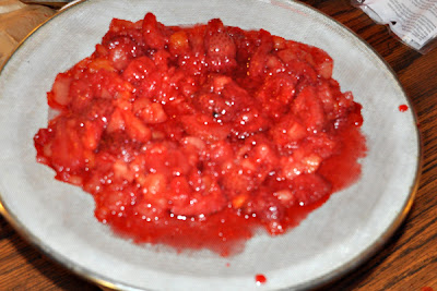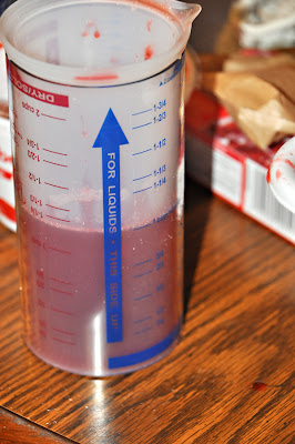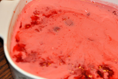 You start out by dissolving strawberry jello in 1 1/2 cups boiling water.