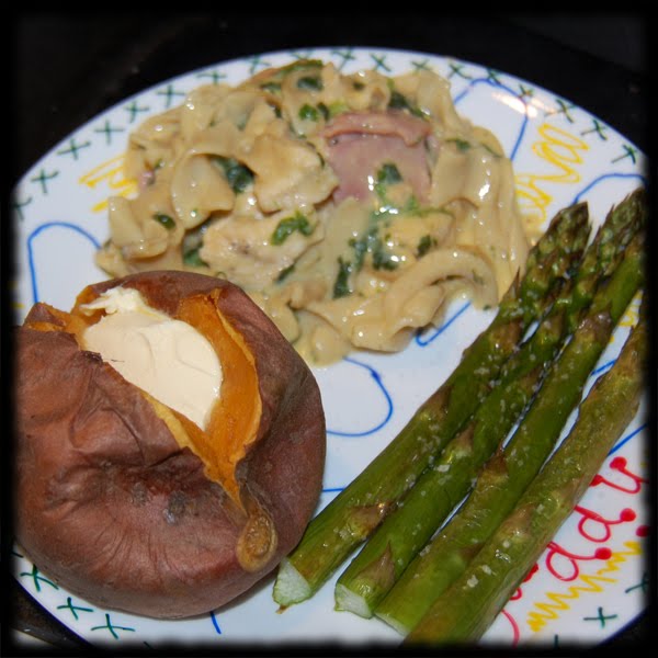 That looks really good! I think my family would like it too. I'd have to go light on the cheese though.. my girl does not like cheese. I can't get her to eat things with cheese…or orange cheese she calls it! BTW that asparagus looks yummy too!! ๐