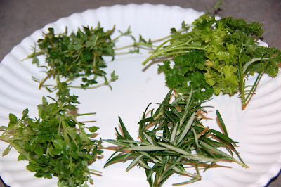 Grab a bunch of fresh herbs. I used rosemary, thyme, basil (boxwood) and parsley.