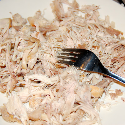 Meanwhile, take some turkey and shred it up with a couple forks.