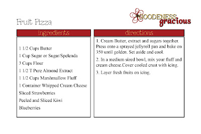 Love the fruit pizza and I wish we could buy fluff here in Utah. All we have is marshmallow cream and I don't think it is quite the same 🙂