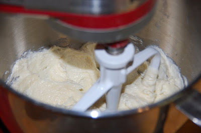Then gradually add 3 cups flour 1/2 cup at a time. Note: I accidentally grabbed the whole wheat flour… so my crust is a little off color.