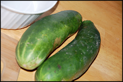 Tonight we gots a quick and simple summertime treat. Pickles. Easy as 1-2-3.