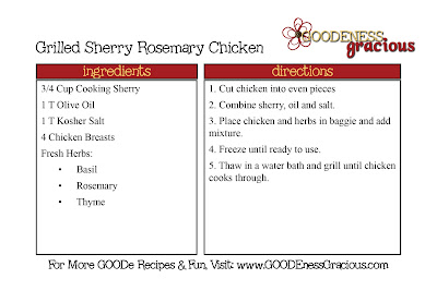 In other grilling news… GOODEness Gracious was awarded the Grill Master award at www.ourhomeschoolhome.com for our Grilled Basil Tomato Chicken Marinade ! |
