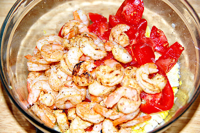 I then grabbed my thawed shrimp and drained any excess water.