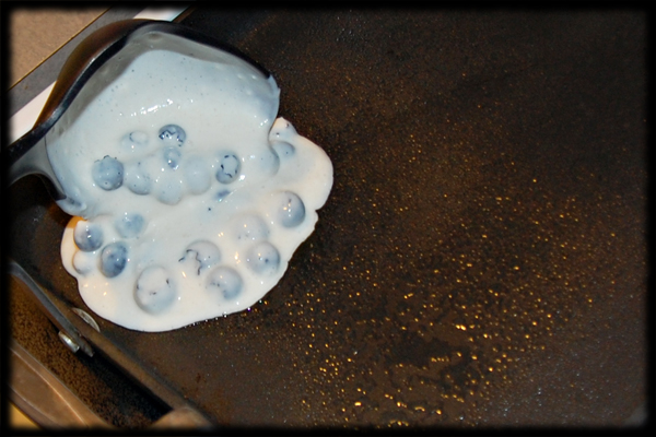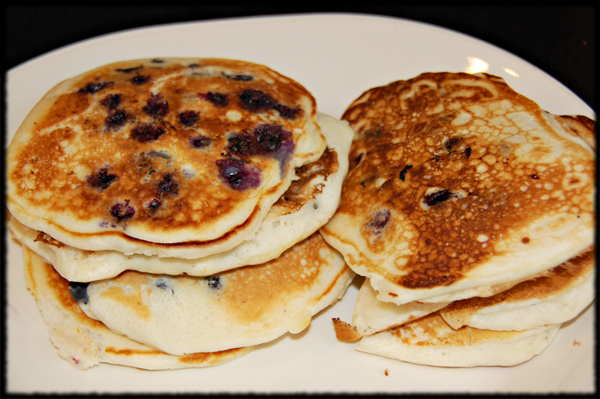 So I decided I would do a little cooking to see if I could will myself out of this head cold. So Mama Won’t Be Blue Blueberry Pancakes, if you will.
