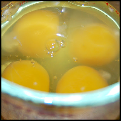 Grab 4 eggs… my new bloggy pal, Lana, taught me this EGGS-cellent tip: Use every other egg in the carton to keep it balanced and prevent any humpty dumpty action during travel time from the fridge.