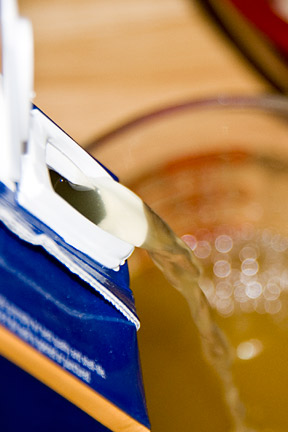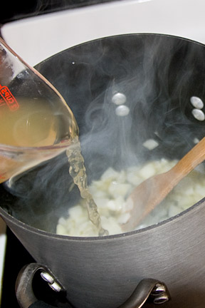 Then I measured out 2 cups of chicken broth (I strayed from the recipe here–you know me… cooking has to be an adventure and following things to a tee is just too boring!)