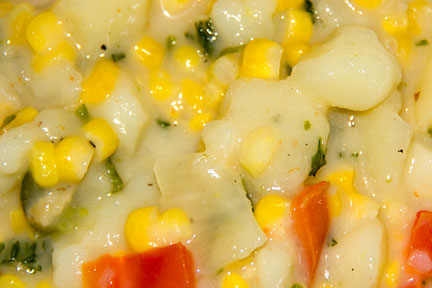THIS is what we had for lunch today. Potato and Corn Chowder. YUM! This little dish is a new favorite around here. Especially on November days that actually act like November days and are a little chilly outside.