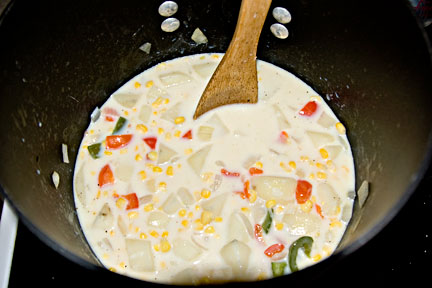 And then poured the milk and 1/2 a 32 oz bag of frozen corn into the pot.