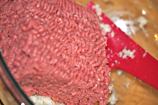 So, I started by putting 3/4 cup bread crumbs in a large mixing bowl.