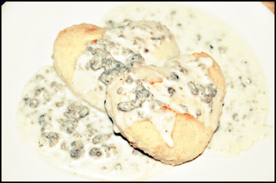 Be still my heart. I do love me some sausage gravy and biscuits. I don't make my biscuits, I use the dough boy's frozen ones. I may have to branch out and make them again.