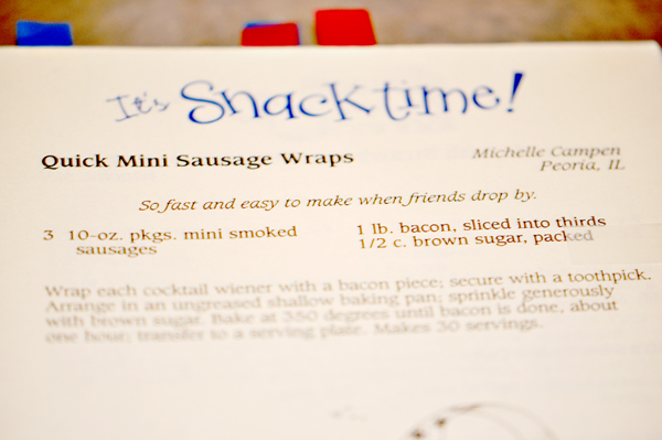 Anyhoo, he’ll thank me and my weenies when company calls this holiday season and they show up all hungry and stuff, I have all I need for some tasty little treats– Quick Mini Sausage Wraps– tonight’s Goode & Gooseberry Patch Project recipe.