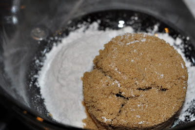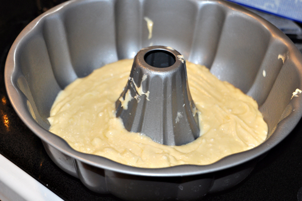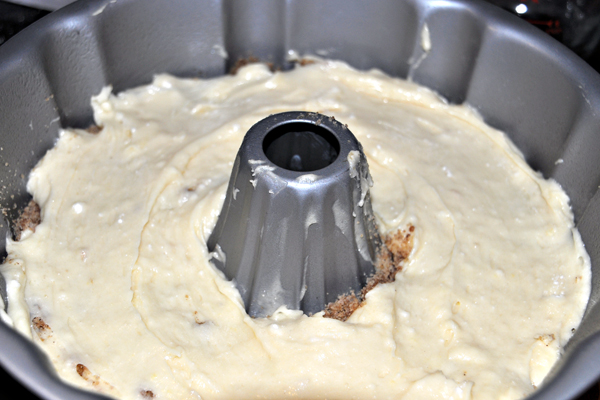 Then sprinkle on top (and forget to take a picture) and then add the second half of your batter.