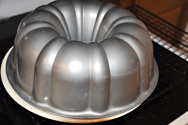 Pour half into a SPRAYED Bunt pan (turns out it is very important to spray it real GOODe… just sayin’)