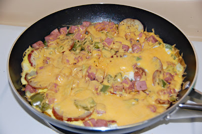 Anyhoo, I used the same method here and then poured the beaten/seasoned eggs throughout my skillet.