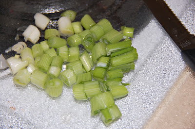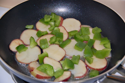 I chopped up 1/2 of a green pepper and then tossed half of that in my skillet