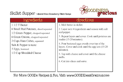 Jumping right into my Goode & Gooseberry Project, tonight’s recipe is Skillet Supper.