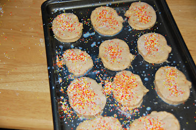 We then grabbed sprinkles. I wish we would have had colored sugar, but sprinkles worked just fine.