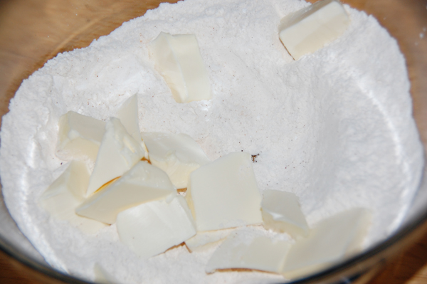 Then cut in 1/3 cup butter